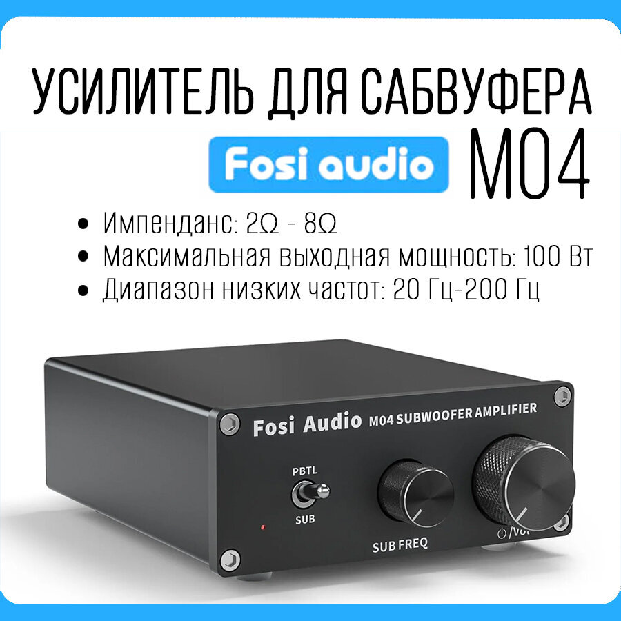 Маленький, но мощный! FosiAudio M04 - это моноканальный усилитель сабвуфера класса D мощностью 100 Вт, с помощью переключателя SUB / PBTL можно выбрать усилитель низких частот сабвуфера или полночастотный моноусилитель, может быть подключен к активному / пассивному сабвуферу и пассивному динамику. Устройство обеспечивает встроенному или автономному сабвуферу необходимую мощность, чтобы вы могли ощутить сотрясающее низкочастотное воздействие (басы) во время просмотра фильмов и и прослушивания музыки.